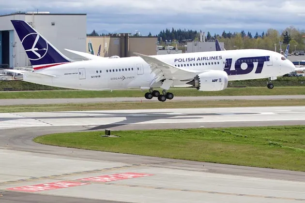 LOT计划于周二在华沙接收其第五架787飞机。航空公司官员本月早些时候与波音高管会面,提交了因1月份停飞而产生的索赔,这使得航空公司已经运营的两架新787飞机失去了使用价值,而波音正在重新设计被怀疑在1月份发生的日本航空787飞机在波士顿停放时的火灾中涉及的锂离子电池系统。