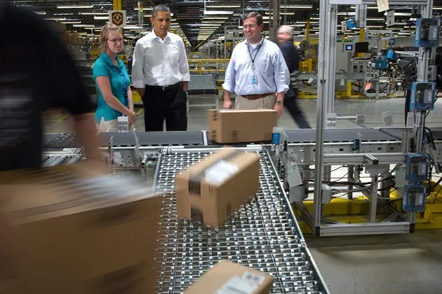 奥巴马访问亚马逊的查塔努加配送中心摄影:斯蒂芬·克劳利/《纽约时报》通过Redux奥巴马总统可以选择的场所比亚马逊的查塔努加仓库更不合适,但不多。