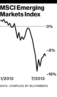 这些祝福已经耗尽。在截至7月17日的八周内,投资者从新兴市场债券和股票基金中撤回了403亿美元,因美国联邦储备委员会可能开始缩减其刺激措施的迹象。与此同时,土耳其、巴西和埃及的大规模示威动摇了这些国家的权力基础。加剧动荡的是中国经济放缓,影响了从煤炭到铜再到钾肥的出口。