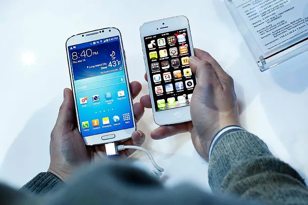 一部三星Galaxy S4智能手机旁边是一部苹果iPhone 5摄影:Victor J. Blue/Bloomberg国际贸易委员会裁定三星侵犯了苹果的几项移动设备专利,并对这家韩国制造商的一些产品发布了禁令。该裁决使苹果在两家公司之间的知识产权争斗中占据了优势。两家公司还在周五的联邦上诉法院讨论了另一项争议,苹果称三星的移动设备中的某些功能是“完全抄袭”其创作的。