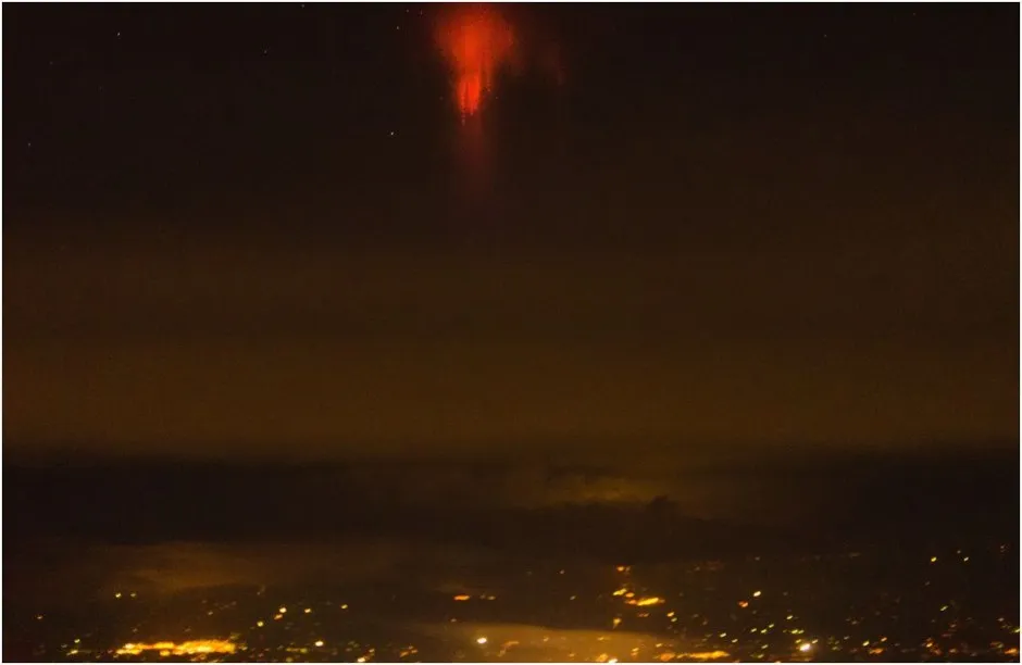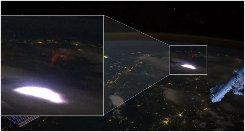 一名宇航员在2012年4月从国际空间站拍摄了这张精灵的照片。美国宇航局约翰逊航天中心