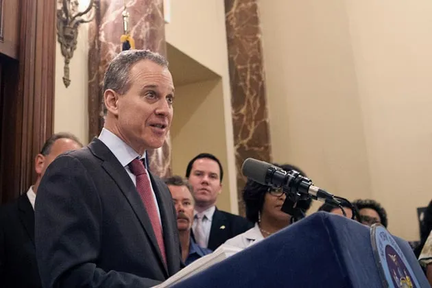 纽约州检察长埃里克·施奈德曼于2013年6月4日在纽约布法罗的新闻发布会上发言摄影:布伦丹·班农/彭博社在美国金融服务行业的狂欢中,产品必须非常不稳定,才能被监管机构关闭。毕竟,任何有几张百元钞票的人仍然可以注册一些比特币、分时度假或可调利率抵押贷款。