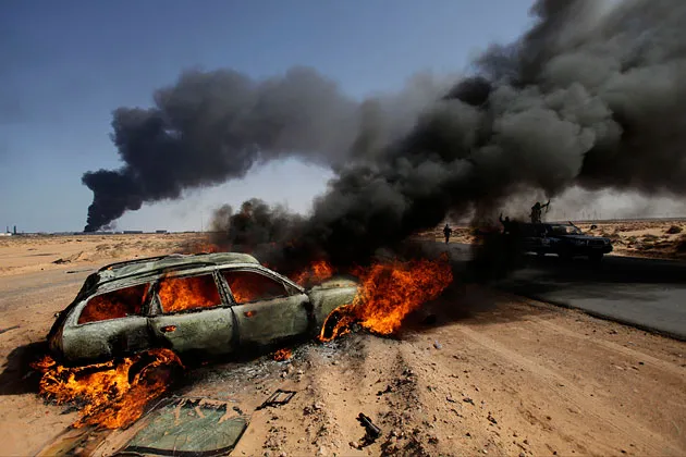 一辆汽车在利比亚革命期间在一个石油终端附近着火照片由Barcroft Media通过Getty Images提供利比亚革命最令人惊讶的事情之一是该国的石油产业在2011年的混乱和暴力中恢复得是多么迅速。在那年8月,利比亚的石油产量降至每天仅45,000桶,较前一年的1月下降了97%,但到去年夏天,利比亚的石油生产已接近满负荷——每天160万桶。这在任何标准下都是一个巨大的成功。