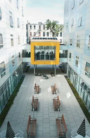 为期两年的试点项目由范·福克斯和莱斯利·R·萨缪尔斯基金会以及大都会人寿基金会资助,目标是为高风险人群提供更好的护理,降低医疗成本和急诊室就诊次数,并让人们能够“在原地老去”——尽可能保持他们的独立性和活动能力。共同基础正在与城市和社区服务中心合作,创建一个可以在全国类似住房设施中复制的示范项目。