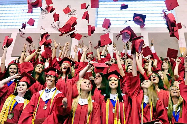 2013年福克斯溪高中的毕业班,6月6日在南卡罗来纳州格兰特维尔摄影:迈克尔·沙利文/ZUMA Press/Corbis总统巴拉克·奥巴马表示法学院应该两年而不是三年。前教育部长拉马尔·亚历山大认为学士学位(pdf)应该三年而不是四年。而巴德学院的校长莱昂·博茨坦认为高中应该两年而不是四年。