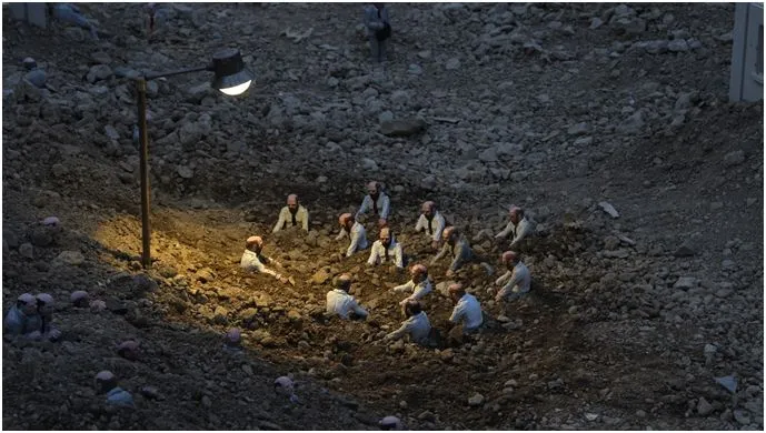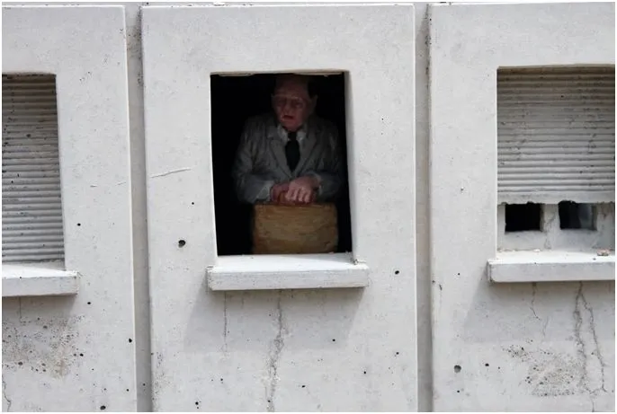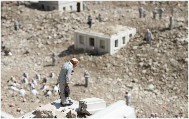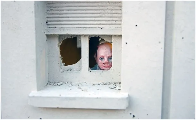 深入 南特,一个拥有约90万人口的法国西部城市,你会发现自己站在另一个更小的都市的门口。玩具屋大小的公寓塔楼从一块泥土地上拔地而起,破裂的外观看起来像是刚刚遭到轰炸;在窗户后面潜伏和在街上徘徊的是身穿西装的小个子男人,他们小得连正常人类的脚都能把他们压扁。他们看起来完全预料到这种情况的发生,摆出自杀式的姿势,脸上挂着忧虑的表情。