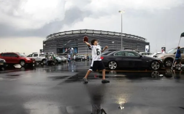 顶部图片:2010年8月16日,一个男孩在新梅多兰体育场的停车场扔足球。路透社/卢卡斯·杰克逊**.**
