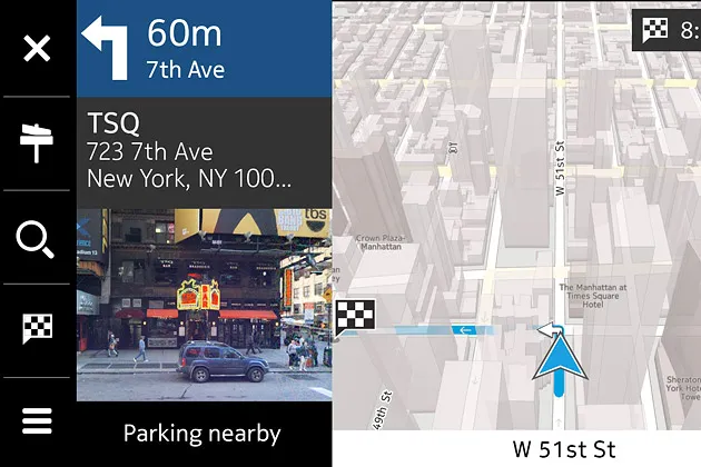 诺基亚的地图和导航是Here Auto的核心。仪表盘软件包含了其Windows Phone 8应用的所有关键功能,从3D地图到实时交通、兴趣点、街景影像和本地商业搜索。