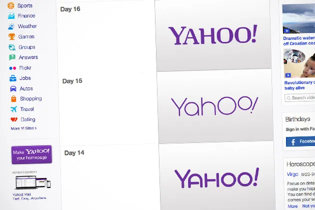 雅虎! 宣布将于9月4日更改其标志。为了迎接这一变化,雅虎在其网站上展示了30种不同的“亚军”设计,持续了30天。