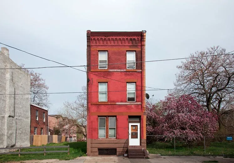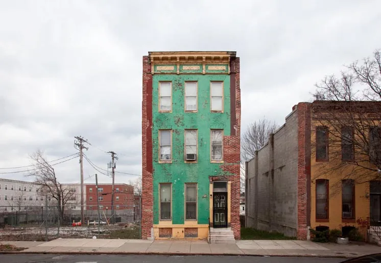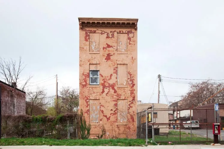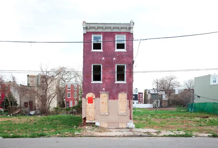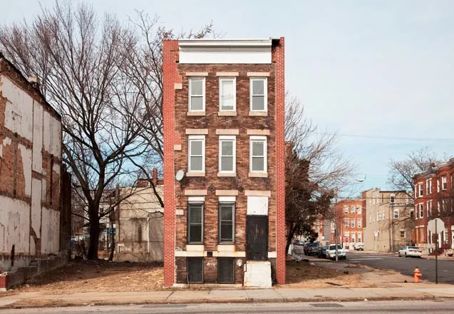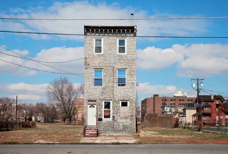 巴尔的摩摄影师本·马尔辛,自己住在一栋维护良好的排屋里,一直在记录那些状况远不如他的建筑。在“最后的房子,”自2010年开始,马尔辛拍摄了令人心碎的照片,展示了没有邻居的排屋,其密集友好的建筑被尴尬地空地包围。
