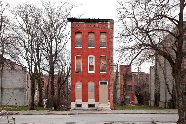 在我第一次拍摄巴尔的摩的一栋独立排屋时,一位穿着浴袍和牛仔裤的年长非裔美国男士走了出来,和我对峙。他很礼貌,但也有点脾气,想知道我是否是本地人。他并不害怕那些导致他街区严重衰退的毒贩,也不害怕无疑盯着他房子的城市官僚。他显然也不怕我。在我们简短的对话中,我明白了为什么他的房子仍然屹立不倒。