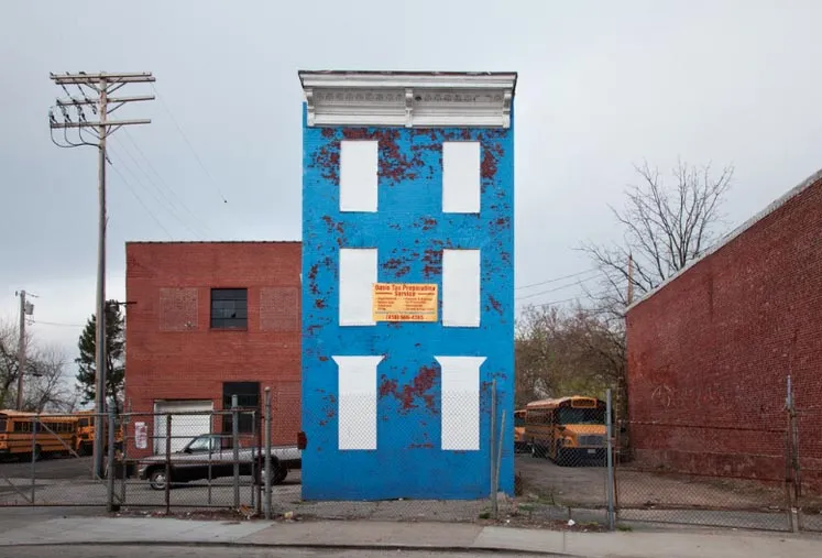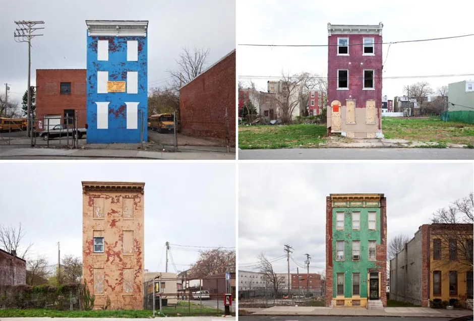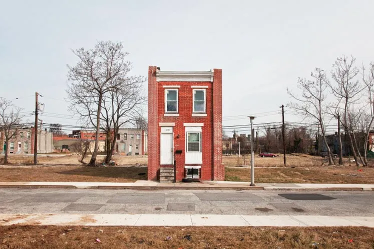 巴尔的摩摄影师本·马尔辛,自己住在一栋维护良好的排屋里,一直在记录那些状况远不如他的建筑。在“最后的房子,”自2010年开始,马尔辛拍摄了令人心碎的照片,展示了没有邻居的排屋,其密集友好的建筑被尴尬地空地包围。