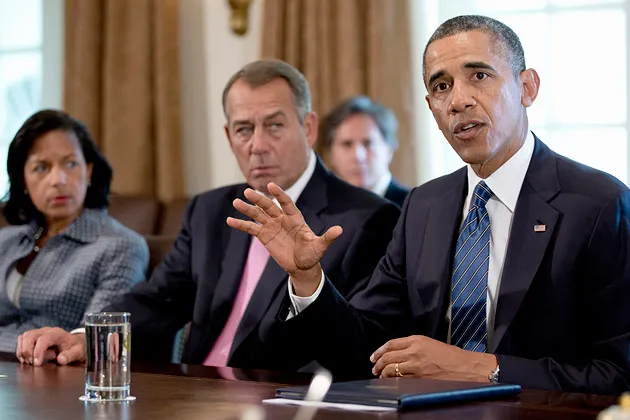 从左边开始,国家安全顾问苏珊·赖斯、博纳和奥巴马在9月3日的白宫内阁会议室与媒体见面照片由卡罗琳·卡斯特/AP图片提供奥巴马总统和他的盟友将在接下来的几天里进行激烈的运动,以说服国会成员支持对叙利亚总统巴沙尔·阿萨德政权的报复性空袭。参议院似乎可能会同意,但众议院的情况则难以预测。在伊拉克战争的阴影下,以及关于叙利亚平民化学袭击的有限信息——一位美国情报官员告诉美联社,确定阿萨德的罪责“并非易事”——这对任何总统来说都是一项挑战。奥巴马的任务将更加困难,因为最近几次选举改变了国会,使得两党都不太可能支持美国在中东的军事干预。