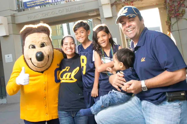 乔·布兰德(右),1991年加州大学伯克利分校MBA毕业生,与家人在哈斯返校节上照片由吉姆·布洛克拍摄足球季来了。在接下来的14个星期六,全国各地的大学城将迎来成千上万的游客,许多拥有悠久足球传统的大学也有着顶尖的商学院。不要以为商学院没有利用这种足球热潮。