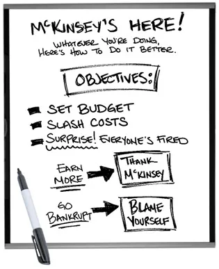 随着美国商业的变化,从五十年代的自上而下管理到零年代的颠覆性创新,该公司也随之变化。到2008年,麦肯锡已成为全球力量,收入达到60亿美元。麦当劳在一章标题为“关键问题:他们值得吗?”中包括了副标题“是的,他们值得”、“不,他们不值得”和“这要看情况”。在许多情况下,麦肯锡昂贵的建议归结为简单地裁员。“麦肯锡可能是现代历史上任何地方、任何时间、任何人中,最大规模裁员的合法化者,”麦当劳写道。