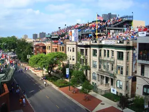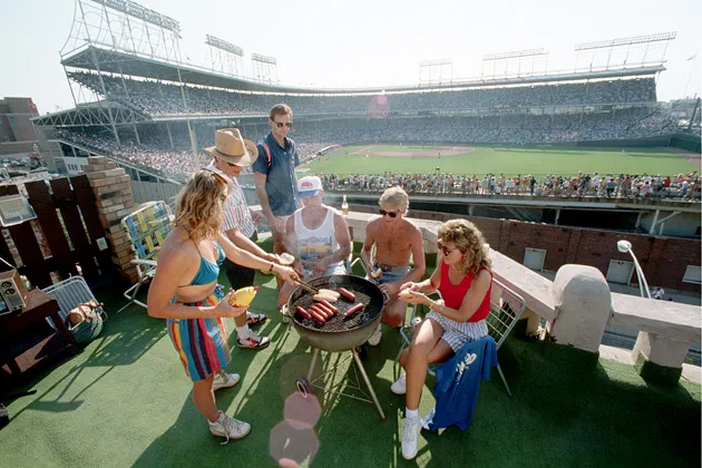 不仅仅是一项有趣的传统岌岌可危。一个名叫乔治·卢卡斯的希腊移民在1974年开始了Wrigley屋顶趋势,当时他以135,000美元购买了一栋破旧的公寓楼,位于谢菲尔德大道。“我开始时在屋顶上用一个韦伯烤架,”他在2011年对芝加哥太阳时报说。卢卡斯的烧烤活动引起了关注,到2000年代初,Wrigley外场周围的公寓已经发展成一个小型产业,配备了酒牌和自助餐。除了几个受欢迎的邻里酒吧,如体育角和小熊熊酒吧,卢卡斯还拥有几栋靠近Wrigley的建筑,包括三座带派对平台的屋顶。 伊利诺伊州州报挖掘了库克县的记录,显示这些物业的总市场价值超过6000万美元。