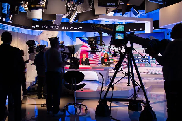 这个设施被称为Newsport,位于南佛罗里达的湿地之间,位于迈阿密国际机场——正好在8号左跑道的轰鸣飞行路径下——和美国军方南方司令部的总部之间。负责管理工作室建设的工程副总裁迈克尔·西格尔曼推测,这栋建筑可能曾作为花卉或医疗用品的分发点,或者两者兼而有之。现在,它是电视行业中最先进的设施之一,并且是有意识地设计来促成Univision与Fusion的结合。“我们希望保持新闻团队的交融,”西格尔曼说。“一旦你在工作室的地面上划定界限,形成南北或东西的对立,你就会失去协同效应。”