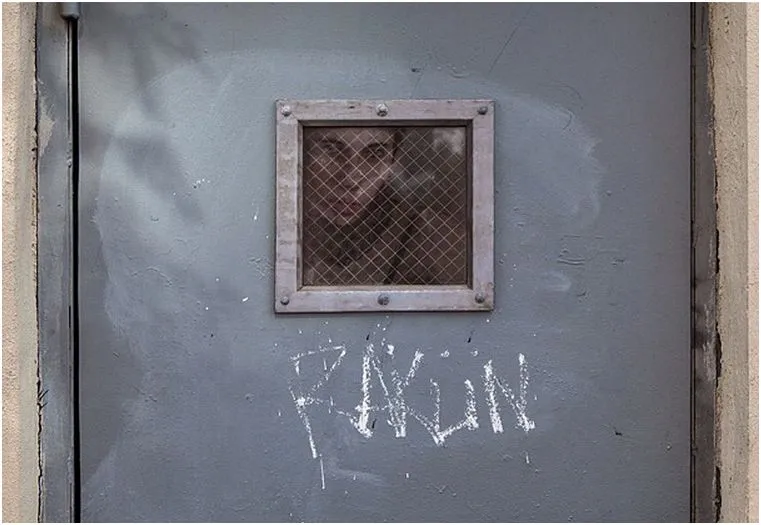 如果你仔细看,Pussy Riot的成员之一正从这个加固的窗户后面窥视,毫无疑问,实际的音乐家正在 现在 在俄罗斯的古拉格里: