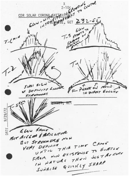 一位对这些幻影光束感到困惑的宇航员画了这幅它们样子的草图: