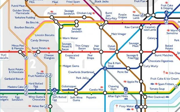 “有很多味道不错的地铁站。我最喜欢的前三个绝对包括 贝克街,它的味道和质地像是 果酱卷布丁。另一个个人最爱是 帕丁顿,它有着美妙的味道和质地,像是 Flump(粉色棉花糖)。不过,名单上的第一位必须是 托特纳姆法院路。它的味道和质地像是英式早餐——香肠和煎蛋,做得恰到好处!