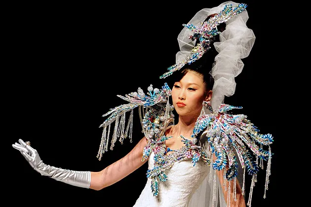 自2006年Galatea开业以来,陈雅平注意到的一个显著变化是:中国的城市新娘变得更加挑剔。每个月,这家连锁店的三个地点(两个在北京,一个在上海)大约销售300件婚纱,价格从2000元人民币到50000元人民币(325美元到8100美元)不等。七年前,大多数新娘会顺从地听从工作人员的“专家”建议来选择婚纱。(例如,陈雅平建议面部轮廓分明的女性穿着简单的面料;而面部特征较圆的女性则可以尝试花卉刺绣或更复杂的图案。)但“今天的新娘带着自己的意见进来,”她说,并补充道,中国婚礼杂志和婚纱网站的快速增长迅速提升了品味并激发了欲望。