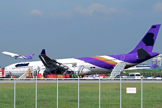 航班TG679在周日晚上从中国广州飞往曼谷的素万那普机场时着陆,机上有288名乘客和14名机组人员,空客A330因起落架故障偏离跑道,航空公司表示。乘客在紧急撤离中大多受了轻伤——虽然不幸,但并不算特别罕见。