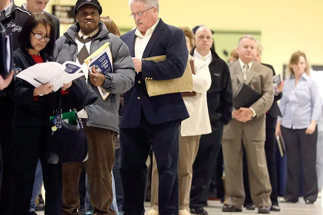人们在纽约州奥尔巴尼的金博士职业博览会上排队,时间是4月11日摄影:迈克·格罗尔/AP 图片在周五的疲软就业报告之后,许多参考被提到美国经济“陷入第二档”。人们认为,经过四年的复苏,经济应该比目前约2%的国内生产总值增长速度加速得更快。但如果这就是它能达到的最快速度呢?如果美国经济没有第三档呢?