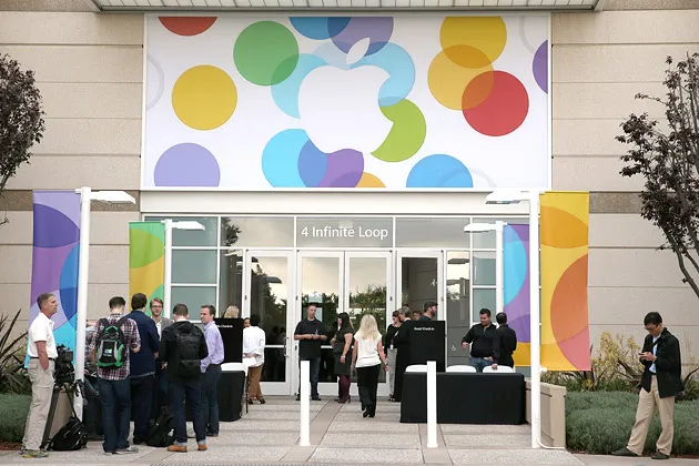 人们于9月10日在加利福尼亚州库比蒂诺的苹果校园参加产品发布会照片由贾斯廷·沙利文/盖蒂图片社提供**下午2:16:**当我们在库比蒂诺结束时,苹果股票略微下跌。值得注意的是,苹果备受推崇的保密机制未能阻止今天的任何公告在活动之前泄露。话虽如此,iPhone 5S看起来非常出色,而更便宜的5C应该能帮助苹果进一步进入它在中国等市场上挣扎的领域。恰如其分的是,科斯特洛正在用他的70年代热门歌曲“无线电无线电”结束此次活动。-BS