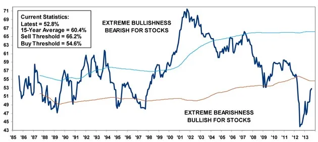 事情是这样的:尽管达到了16个月来的最高点,但情绪读数仍远未达到牛市的标准。实际上,尽管目前市场和高端金融中有很多积极的事情,但华尔街的悲观情绪现在与2009年3月市场低点时一样强烈。根据Subramanian的说法,策略师们仍然建议投资者在股票上的配置显著低于53%,而传统的长期平均基准配置为60%到65%。标准普尔500指数自2012年7月指标触底以来,已上涨近20%。