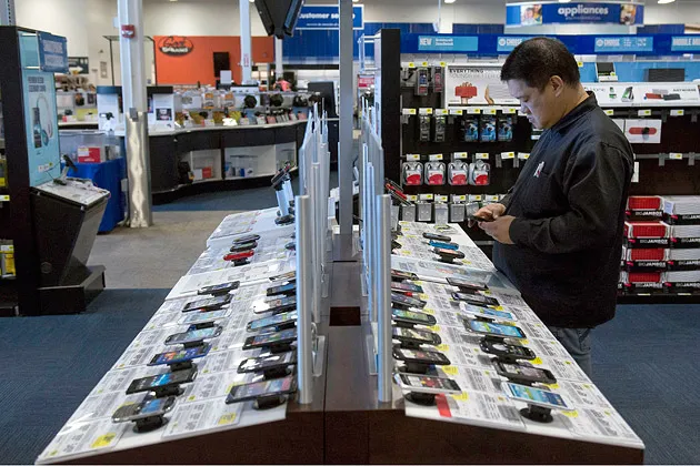 一位购物者在旧金山的百思买商店查看手机,时间是1月30日摄影:大卫·保罗·莫里斯/彭博社在实体零售商中,展厅购物已成为一个比盗窃更肮脏的词。盗窃至少是非法的——亚马逊有权在顾客浏览商品后将他们吸引走。