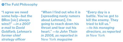 斯坦说,最初,富尔德是一个积极的影响,因为“以他略显军事化和残酷的方式,”他在1994年从美国运通分拆后,为雷曼注入了目的感和方向感,当时其生存受到怀疑。前同事们描述了富尔德的“高盛嫉妒”——他对将雷曼建设成一个与 高盛 竞争的公司的痴迷。他几乎达到了这个目标。