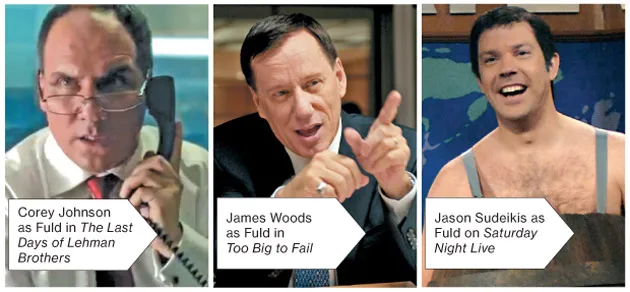 三个假Fuld:Dick在屏幕上获得了处理照片由Macall B. Polay/HBO/Everett Collection(《太大而无法倒闭》);Dana Edelson/NBC/NBCU Photo Bank/Getty Images(SNL)