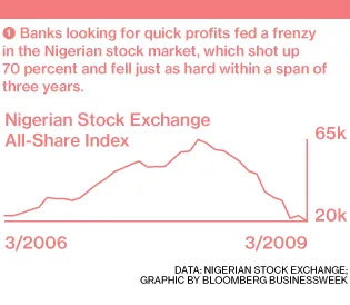 在危机来临之前,尼日利亚的银行并没有跟踪它们的保证金贷款。“当他们查看投资组合时,他们意识到一个典型的10,000美元的协议价值只有500美元,”尼日利亚证券交易所市场运营和技术执行董事阿德·巴约莫说。“银行占我们资本市场的40%,所以如果银行发生任何事情,就会损害整个经济。2008年是尼日利亚相当于华尔街大崩盘。”在那年的秋天,股市持续下跌,到2009年12月,已下降了70%。