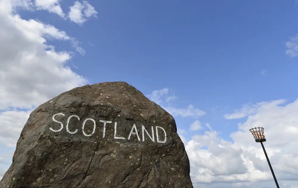2013年8月22日,在苏格兰边界的卡特巴尔看到一块标志石。卡特巴尔位于英格兰和苏格兰之间的切维奥特山脉。这里也是1575年英苏冲突“雷德斯韦尔袭击”的发生地,这场冲突在一首边境民谣中被纪念。路透社/托比·梅尔维尔