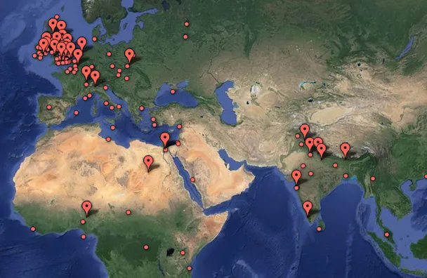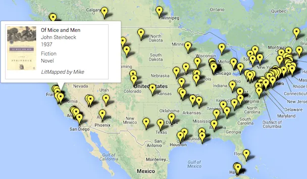 但我还有很多书没有读,也有很多地方我从未去过(请分享推荐!)。因此,我很高兴发现了一些地图项目,链接通过 Google Maps Mania,它们在绘制阅读与地点之间的字面书签(文学地标?)方面做得比我全面得多。