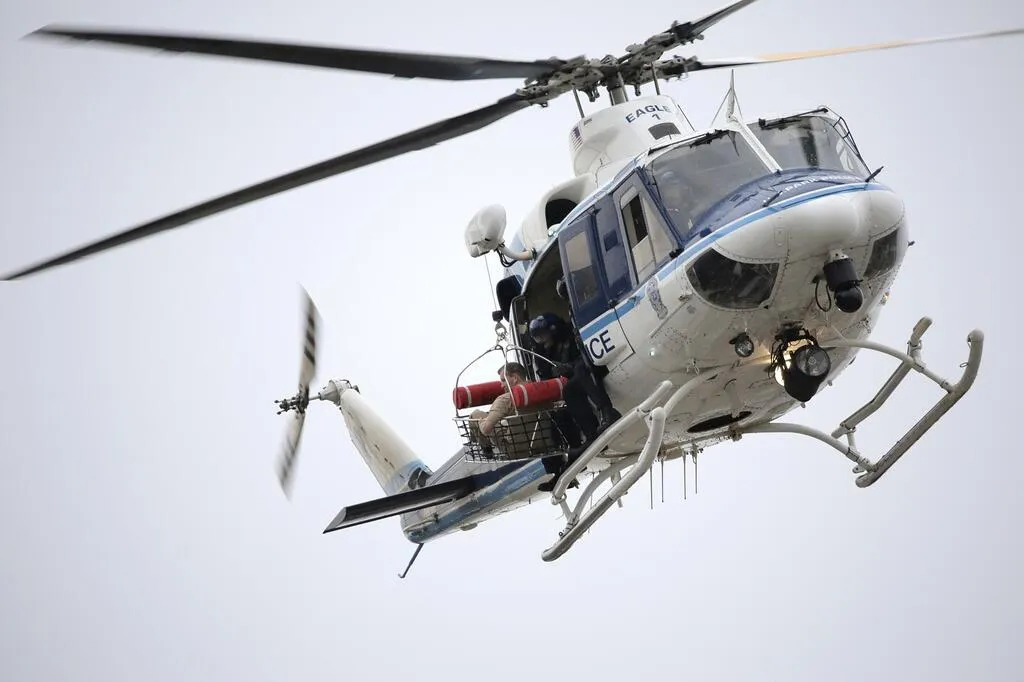 上午10:54路透社拍到一架警用直升机正在拉起一名看似枪击受害者的画面。(通过@jaredbkeller)