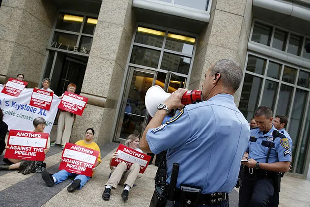 休斯顿警察在九月份对基石XL管道抗议者的回应照片由亚伦·M·斯普雷彻/NoKXL通过Flickr提供随着国会召开关于奥巴马总统气候变化倡议的听证会(星期三),标志着基石XL管道未获批准的五周年(星期四),并接受总统对煤电厂排放更严格规定的最后期限(星期五),环保组织在华盛顿特区内外举行了一场即兴的气候周。随着视频成为号召的首选方式,似乎阿尔·戈尔潜入了探索频道的节目制作间。