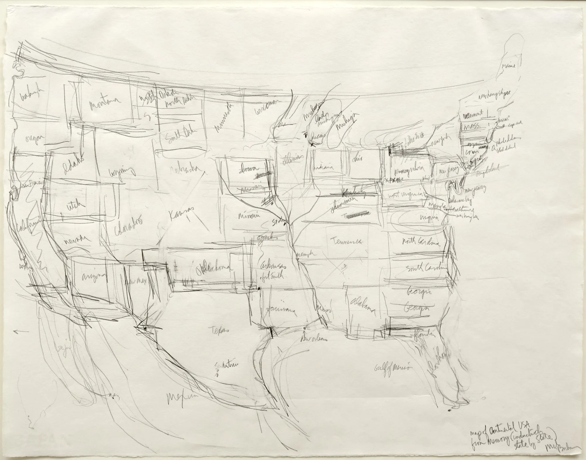 高桥的小实验被复兴为一个名为“从记忆中:绘制美国地图”的展览,该展览于周五在曼哈顿的肖恩·凯利画廊开幕。