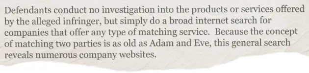 该 Lumen控制的专利 涉及收集用户偏好并通过这些数据匹配用户。FindTheBest否认侵犯该专利,并辩称Lumen的高管似乎对此并不在意。相反,根据一份法庭文件,Lumen坚持要求FindTheBest提供其购物网站如何侵犯该专利并从这些侵权中获利的详细说明。Lumen的法庭文件中的语言与针对其他公司的类似索赔几乎相同,正如FindTheBest在自己的投诉中所辩称: