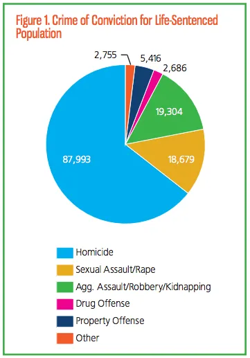 总的来说,159,520名罪犯在美国服无期徒刑,其中49,081人没有假释可能性。