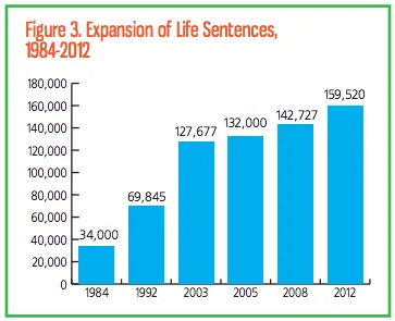 一份新报告今天发布,来自量刑项目的报告显示,尽管美国的整体监狱人口在下降,但在2008年至2012年间,服无期徒刑的罪犯人数增加了11%;在同一时期,服无期徒刑且没有假释可能性的人数增加了22.2%。