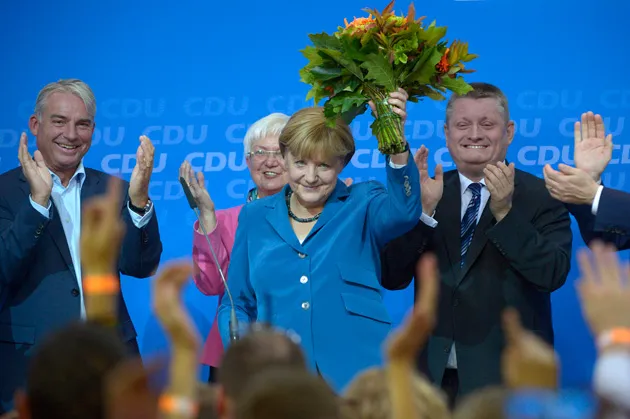 德国总理及基督教民主联盟CDU总理候选人安格拉·默克尔在2013年9月22日于柏林CDU总部发布首轮出口民调结果时,手持鲜花并受到热烈欢迎照片由约翰内斯·艾塞尔/法新社通过Getty Images提供在竞选活动中,安格拉·默克尔强调了欧洲团结的重要性。“我们希望一个强大的欧洲,一个成功的欧洲,”她在选举前夕的演讲中说道。“欧洲的稳定符合德国的根本利益。”