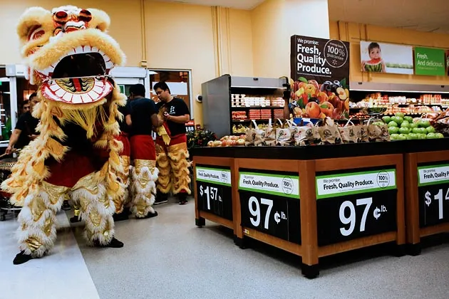 舞者在洛杉矶唐人街的沃尔玛店开业典礼上表演摄影:帕特里克·T·法伦/彭博社沃尔玛今天宣布了一项应该会让很多人感到高兴的消息,甚至可能比零售商开始 出售啤酒 和 打折的iPhone时更让人高兴。