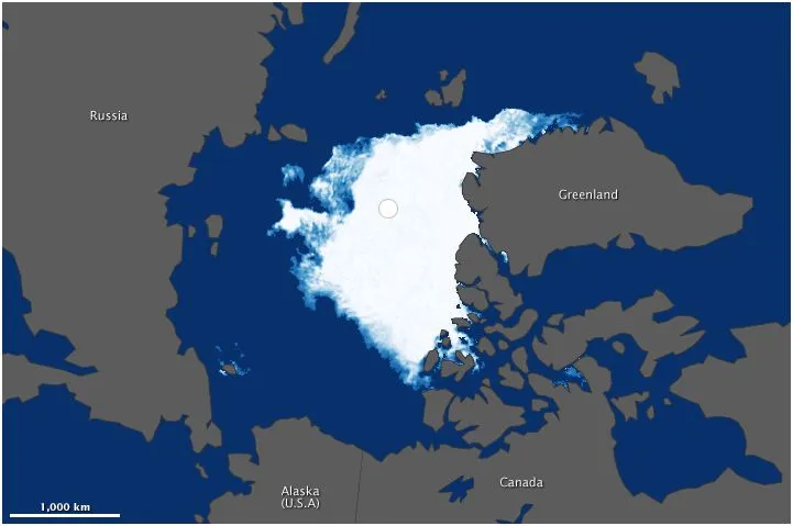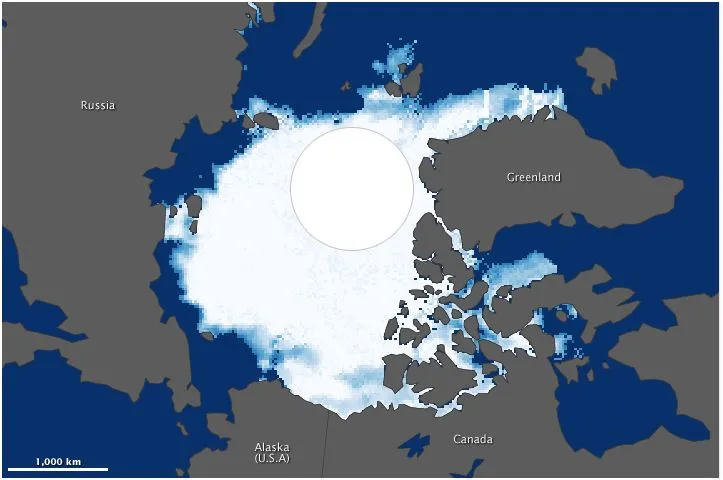 所有这些都是布罗克和普特南声称这一切可能今天再次发生的背景。北极的冰冻H2O储备正在以闪电般的速度融化,正如 这些可视化 所示,展示了每年海冰缩小的程度。这是1984年冰层最小的范围:
