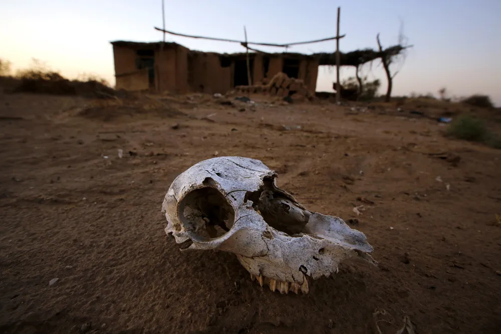旧行李躺在甘肃省民勤镇郊区干涸的石羊河附近的废弃农场的地面上,2013年9月20日。路透社/卡洛斯·巴里亚