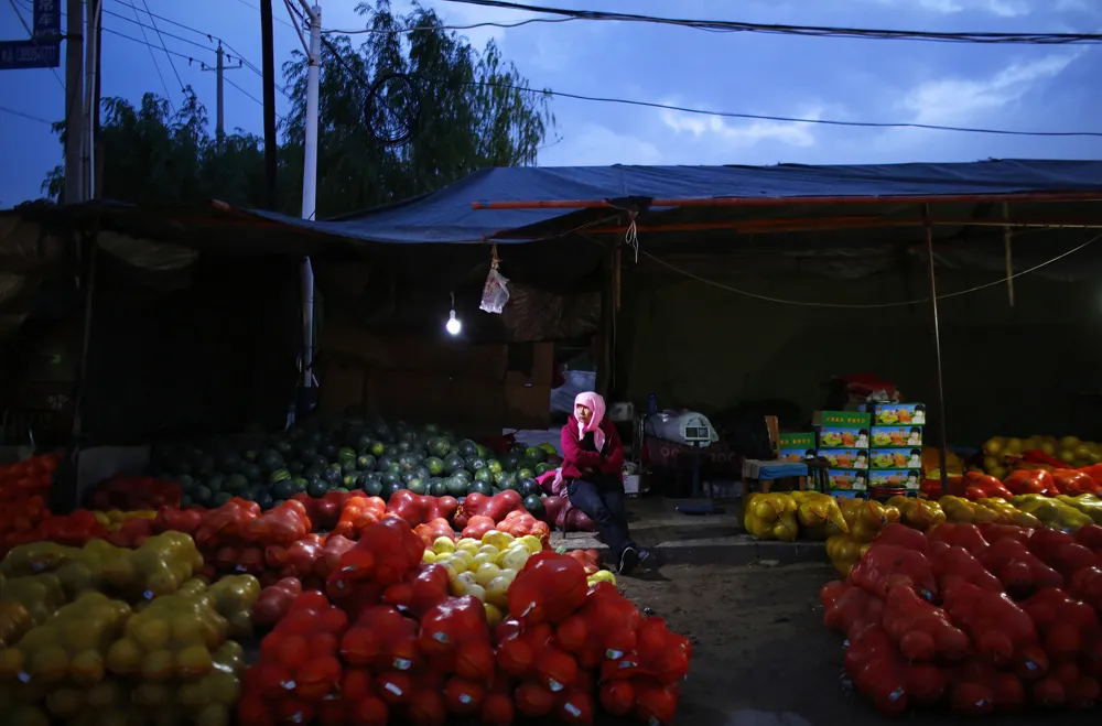 2013年9月18日,甘肃省民勤县当地市场的一位商贩。路透社/卡洛斯·巴里亚