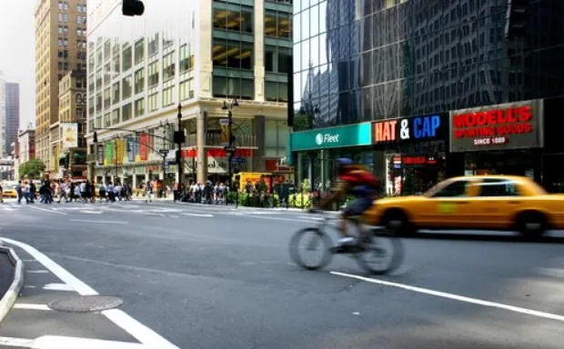 纽约市的第六大道。alexpro9500 /Shutterstock.com前几天晚上,一群名为“通行权”的自行车倡导者采取了行动,喷涂了重型白色车道和类似于官方交通局版本的骑自行车的人图标(尽管有些有翅膀)。他们的行动是在一名出租车司机在48街和第六大道的拐角处冲出人行道,撞到一名年轻的英国游客并截断了她的腿之后进行的。这名司机后来声称他加速并失去控制是因为与一名自行车快递员发生了争吵。