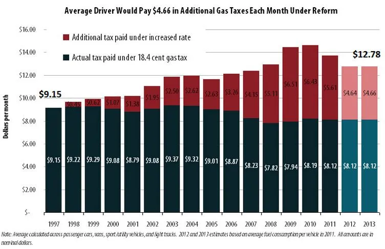 如果你对这个话题不太了解,这里有一个简短的介绍。联邦汽油税为支付大多数司机通勤所用的主要高速公路的公路信托基金提供资金,自1993年以来没有提高。在过去五年中,国会至少从一般纳税人基金中注入了530亿美元来弥补短缺。到2015年,公路信托基金将破产。