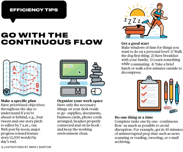 没有完美的方法将这些教训应用于人类生活。“你的一天有很多 不均匀,”博尼尼说。刚到的时候,他就开始清理我的库存。通常当我阅读新闻时,我会收藏大约20个链接标签,打算在某个时候阅读它们。这就是博尼尼所说的“批量”过程。博尼尼希望我“流动”——在每个任务开始时完成它。流动对他来说非常重要,以至于在家里,他使用每个碗碟时都会单独清洗。他说洗碗机的批量库存让他感到烦恼。(这并没有让他的妻子烦恼:博尼尼只有在她不在时才能在厨房里流动。)当我打开故事时,他强迫我在找到每篇文章时要么打印,要么关闭,或者发推特。在前往工作的75分钟车和火车旅程中,博尼尼坐在我旁边,问我关于通勤的问题。我告诉他我决定利用这段时间学习西班牙语,这对我的工作会有帮助。“太好了!”他回答。然后我提到我实际上还没有开始。他沉默了。