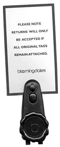 诺德斯特龙,另一家销售昂贵时尚的大型零售商,不使用衣物上的塑料无退货装置,西雅图公司的发言人科林·约翰逊表示。银色纸标签,类似于价格标签,贴在特殊场合裙子的外侧缝高处,腋下位置。退货时仍必须附上这些标签。“我们的经验是,如果你尊重顾客,他们也会尊重你,”他说。